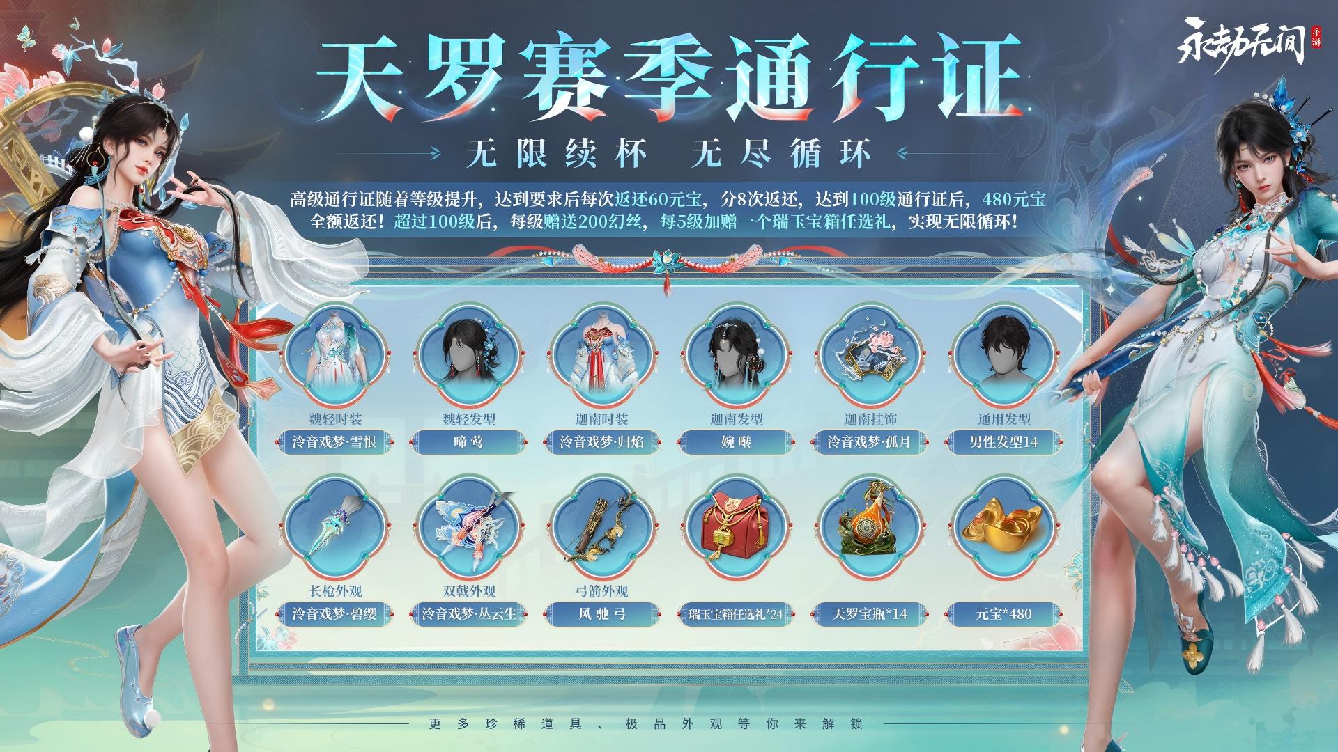 全新昆曲风格的天罗赛季通行证上线,内含蓝梦、迦南泠音戏梦系列极品外观,以及长枪、双戟、弓箭等极品武器外观的强势加入。通行证外观多多,内容豪华,全额返还!